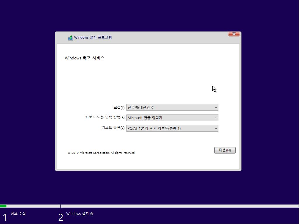 파일 로딩이 끝나면 windows10 설치 화면으로 접속 됩니다.